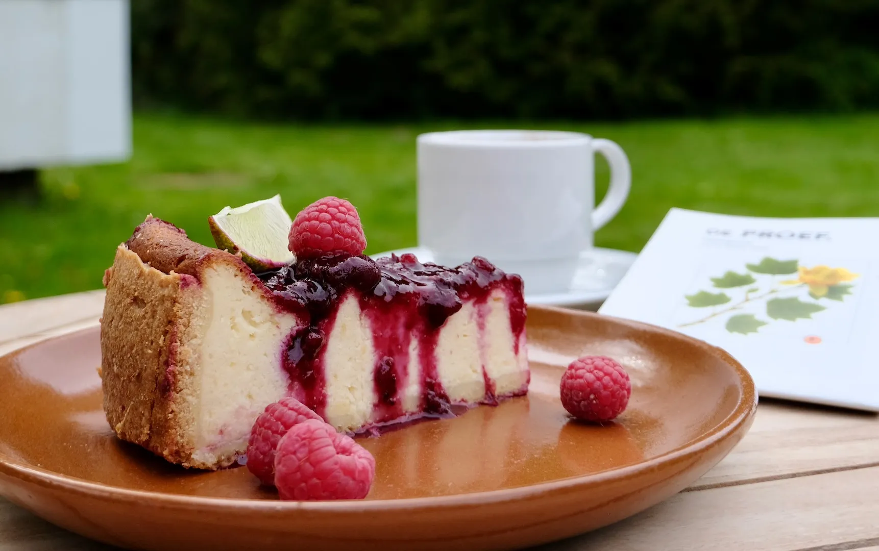 Huisgemaakte gebak, een glas streekbier of -wijn, bordjes voor takeaway. — voor als je nog even wilt blijven.